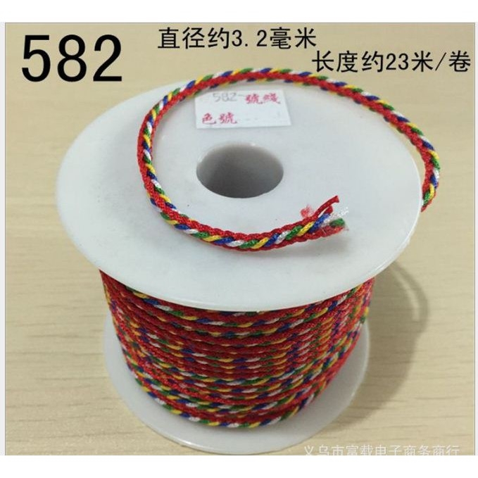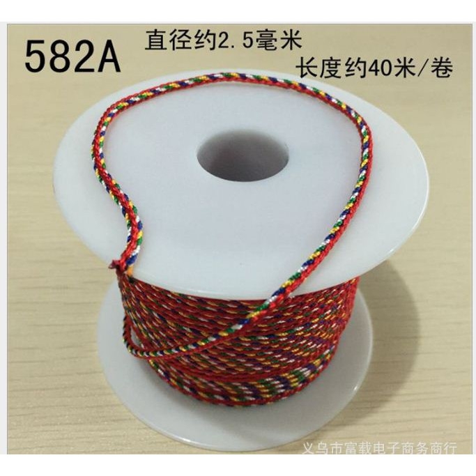 1 cuộn dây chỉ ngũ sắc may mắn viền chỉ đỏ 581/582 size 1.6/2.5/3.2mm