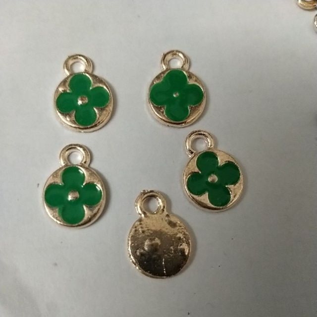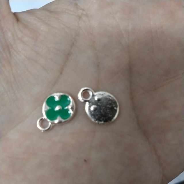 1 mặt kim loại vàng nhạt hình cỏ 4 lá xanh 10mm