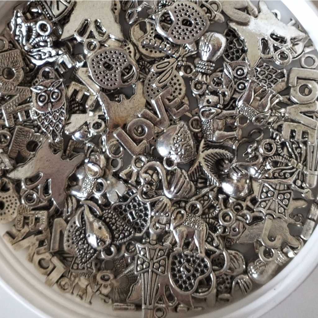 Mix 30 Mặt hỗn hợp kim loại các kiểu làm dây chuyền chất liệu: hợp kim mạ màu giả cổ lâu đen. kiểu dáng và size theo hình bên dưới Mua sĩ sll liên hệ shop 0938297348. Mãu riêng lẻ bán gói 5 cái mặt hỗn hợp gói 25gam khoảng 15-20 cái,