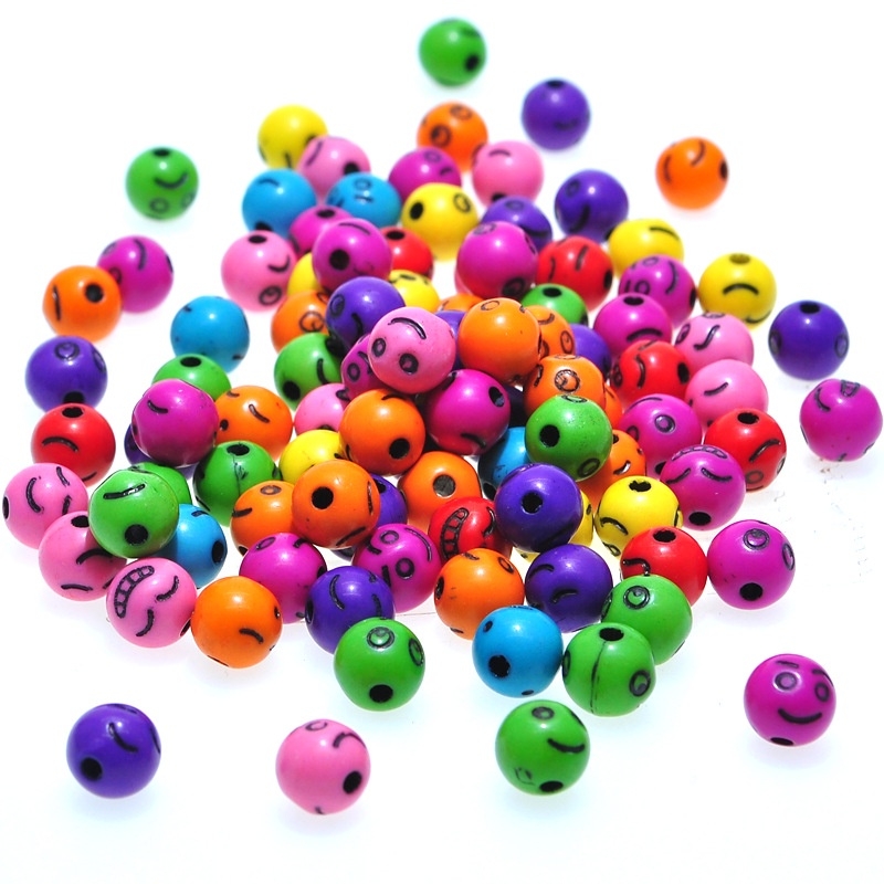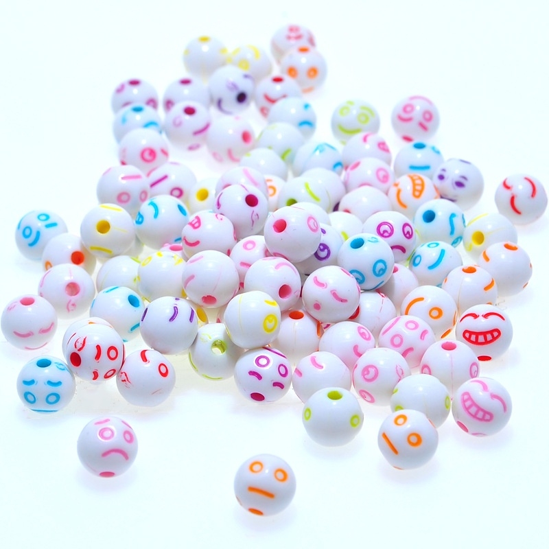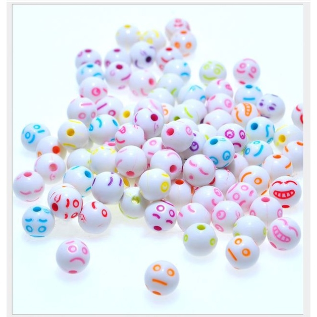 10-50 hạt nhựa in mặt cảm xúc 8mm, mặt cười có lỗ xỏ vòng hạt, tráng trí thủ công tùy thích