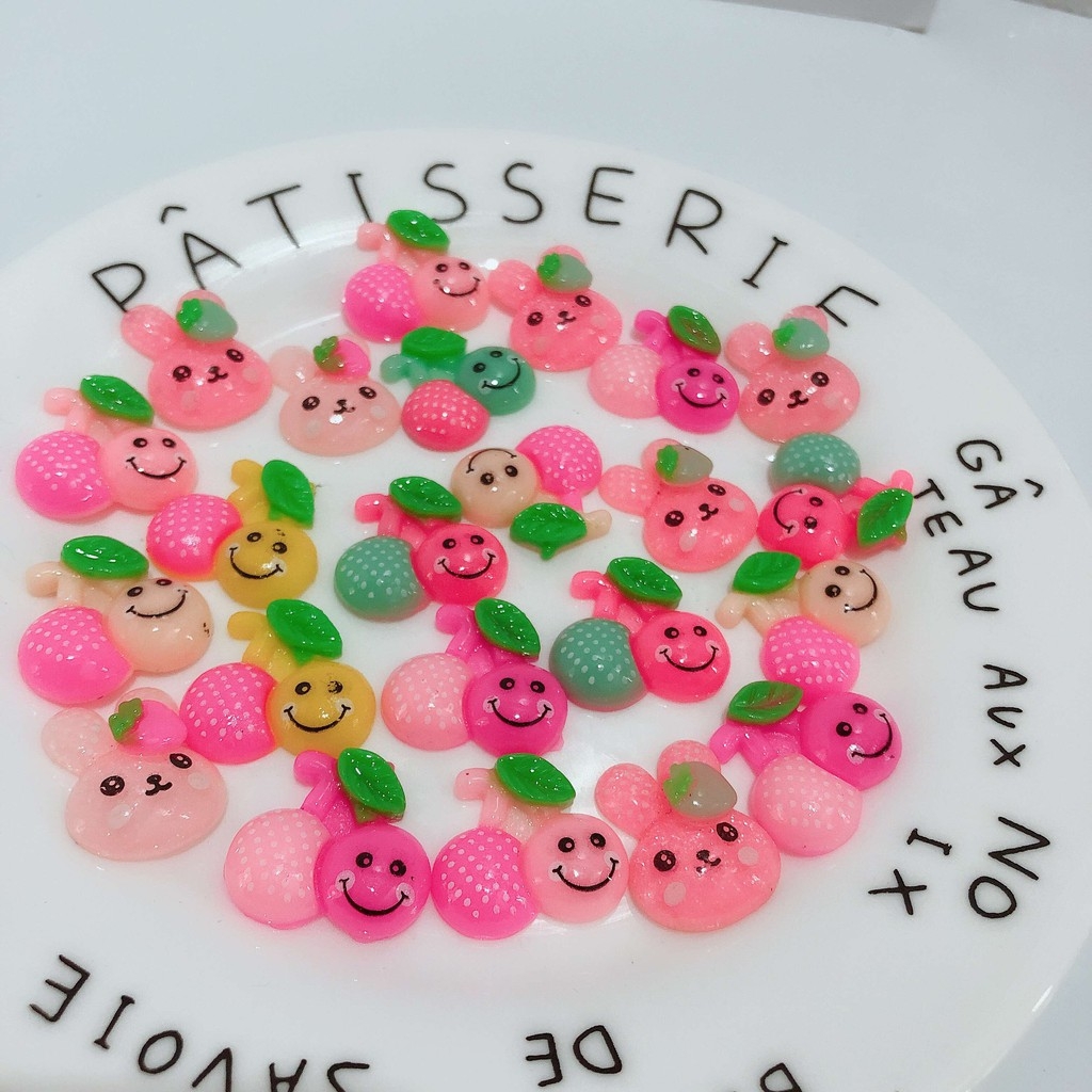 10-50 Miếng -O82-patch nhựa hoa quả mặt cười-19x22mm
