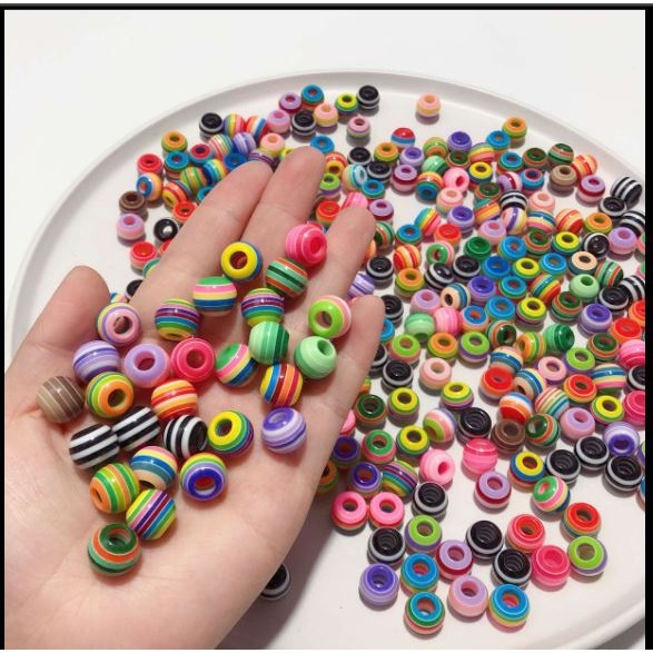 10-50 viên (P128-119-P38) Hạt tròn 12mm sọc nhiều màu lỗ lớn 5mm