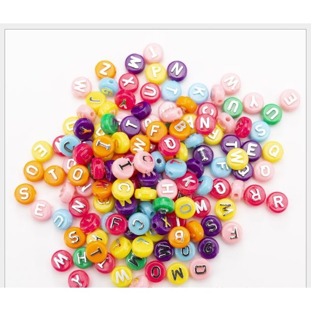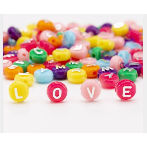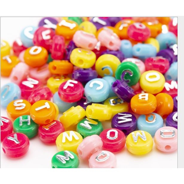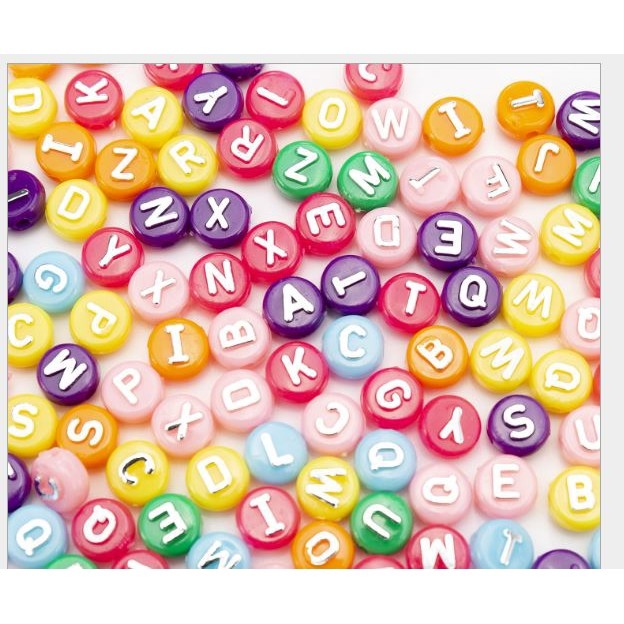 10-50gam Hạt Chữ Cái tròn nền đủ màu chữ màu bạc 10mm (P128-31) loại đẹp chữ Nổi làm vòng hạt