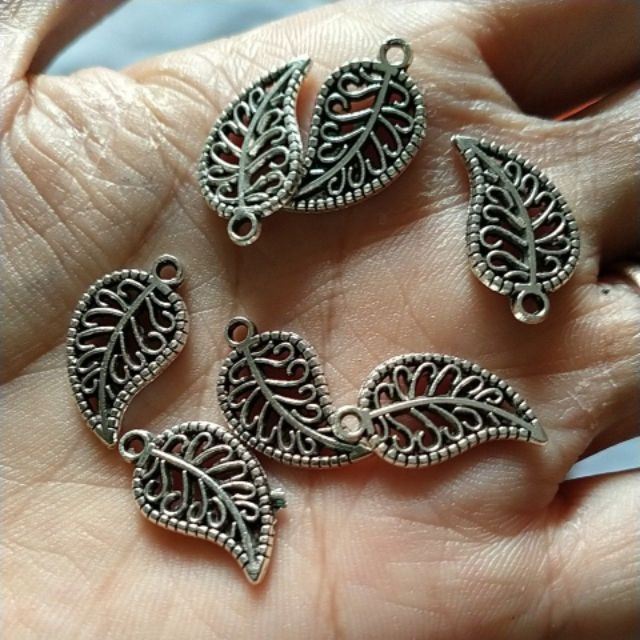 10-50gam Mặt chiếc lá hợp kim giả bạc cổ 10x18mm Mh143