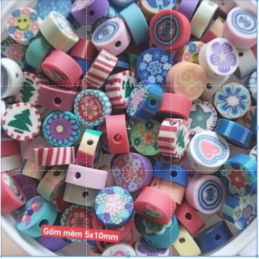 10 Charm đất sét mềm nhiều kiểu size 5x10mm có lỗ xỏ