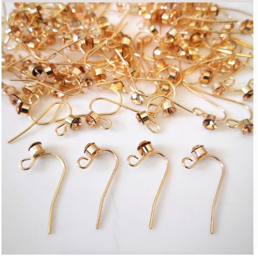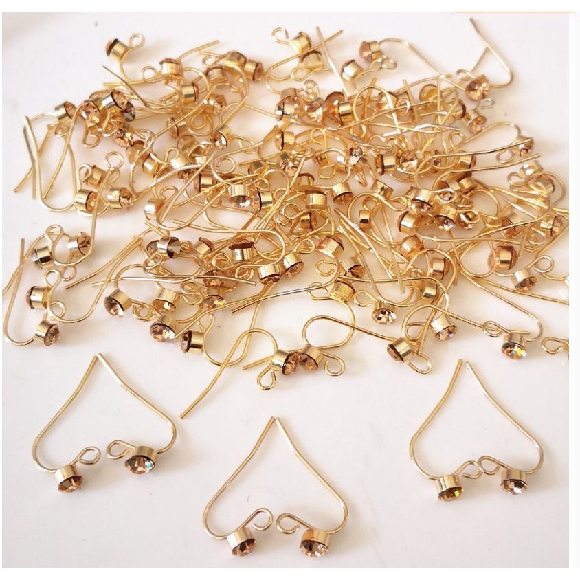 10 đôi móc hoa tai đính đá vàng chất liệu: kim loại +đá màu sắc: vàng. sử dụng làm hoa tai handmade các kiểu ....