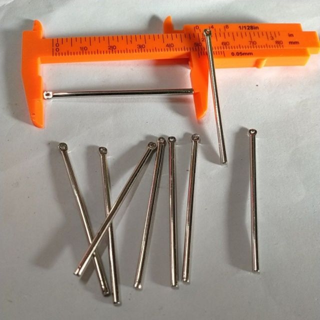 10 que tròn làm hoa tai nối dài Chiều dài: 5cm, đường kính que tròn 2mm, lỗ xỏ treo 1.1mm. Chất liệu:kim loại. Màu sắc: bạc.