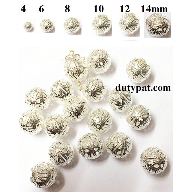 10 viên charm rỗng nhẹ (hạt cung linh) đủ size 4-6-8-10-12-14mm