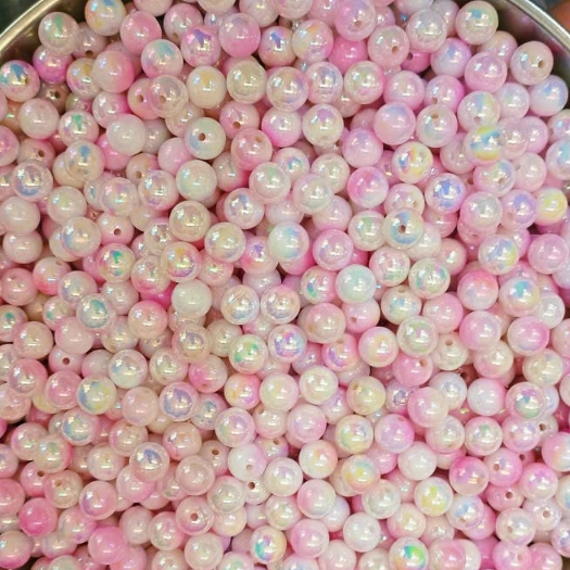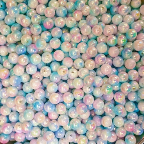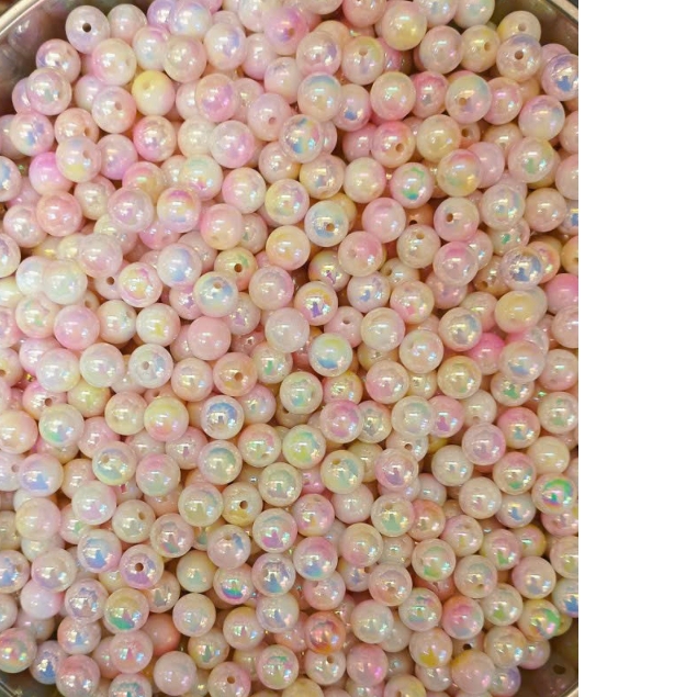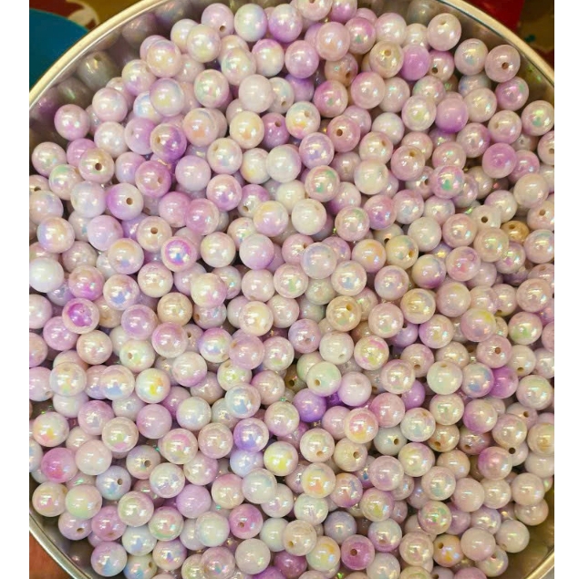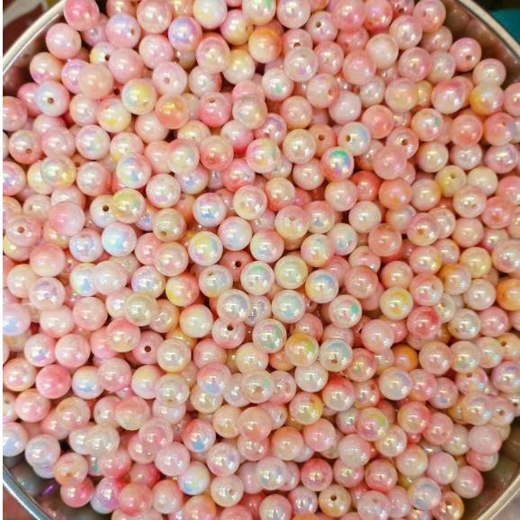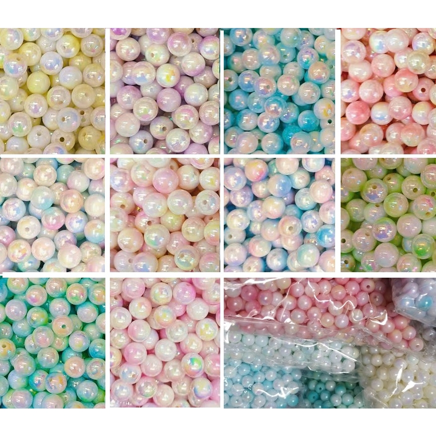 10gam hạt nhựa đa sắc bóng cừ 6mm/8mm/10mm có lỗ xỏ làm vòng hạt, trang trí làm thủ công handamde tuỳ thích