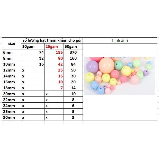 10gam hạt nhựa tròn nhiều màu pastel 6mm-8mm-10mm-12mm-14mm-16mm-18mm-20mm