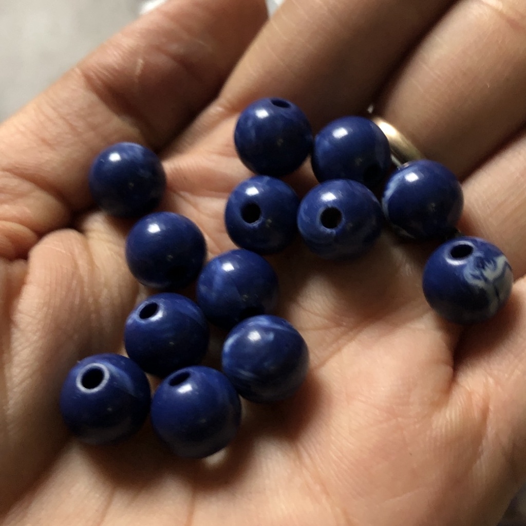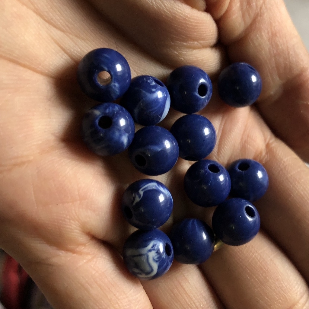 hạt nhựa tròn vân giả đá có lỗ xỏ làm vòng tay, vòng cổ