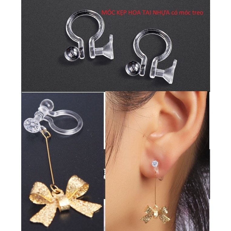 3. Mẫu kẹp không móc treo: mẫu này cần có phần gắm kim bằng silicon để móc treo chi tiết hoa tai vào.(Hiện tai shop bán phần silicon riêng).