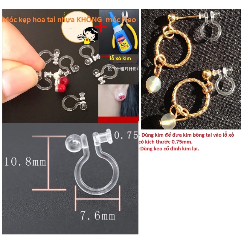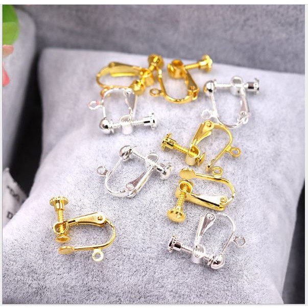 1. Mẫu móc vặn làm Khuyên tai (hoa tai, bông tai) không cần xỏ lỗ, dùng vít vặn kẹp vào tai. Mẫu này chỉ cần móc treo chi tiết hoa tai vào là được