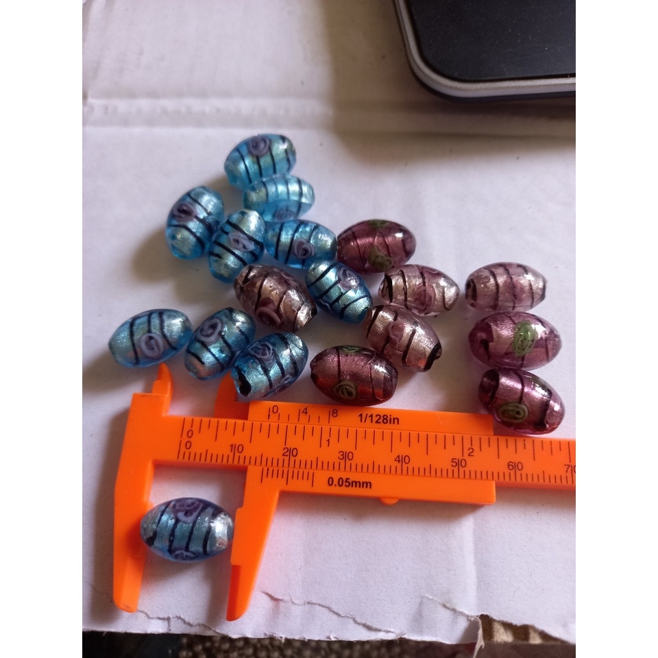 2-10 viên lu thống ,charm thủy tinh 11x17mm in hoa văn lỗ xỏ 2mm làm vòng handmade