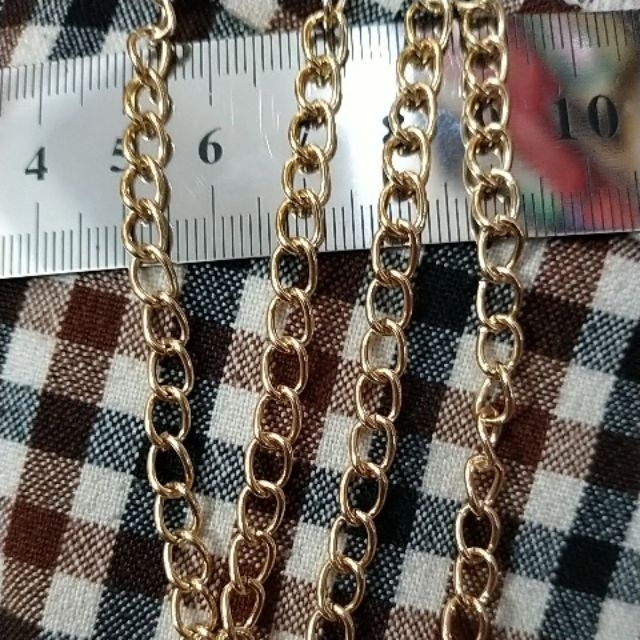 Xích cắt đoạn sẵn 75-76cm màu vàng làm trắng sứ c mix hạt,trang trí handmade tùy thích.... Loại này cắt đoạn sẵn nên nếu cần dài hơn về các bạn tự nối lại được nhé. Sợi to 5mm. Chất liệu kim loại sắt mạ. Số lượng gói 2đoạn