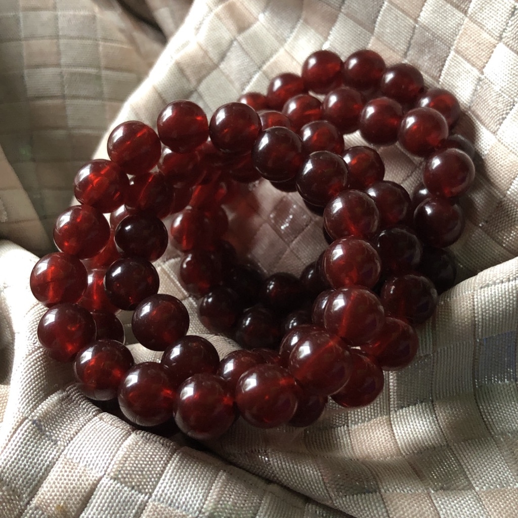 35 hạt nhựa tròn màu đỏ đô giả đá 8mm (gói 10gam) có lỗ xỏ làm vòng tay, vòng cổ (TL)