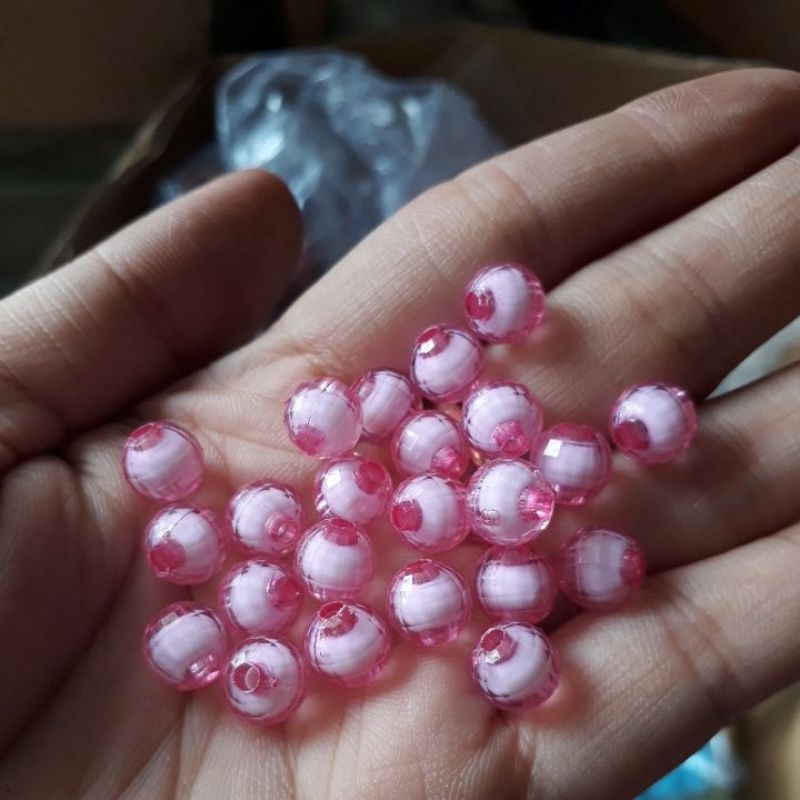 40 hạt nhựa 10mm hồng nhạt nhân trắng