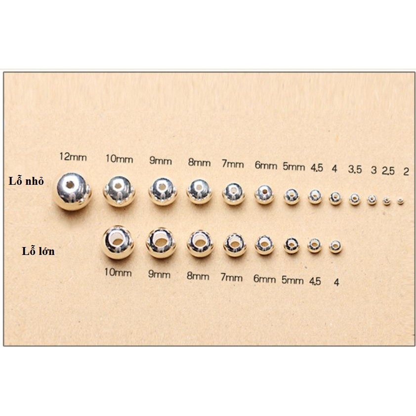 5-10 viên bi bạc 925 size 3.5mm lỗ nhỏ 1mm & lỗ lớn 1.5mm