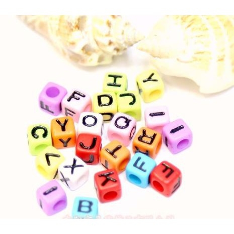 5-25gam Hạt vuông in chữ 7mm (loại tốt) nhiều màu làm vòng handmade
