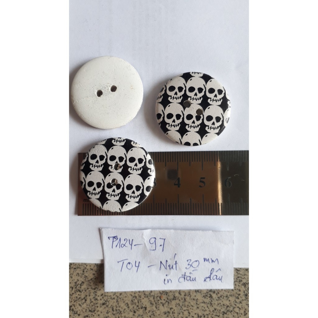 5 nút gỗ, cúc gỗ 2 lỗ size 30mm in đầu lâu