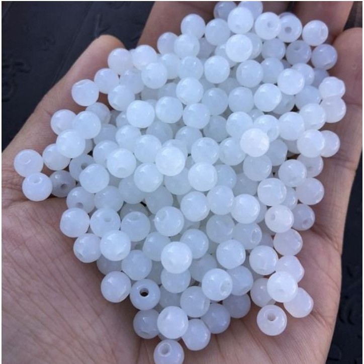 500 gam Hạt đá thủy tinh màu trắng gạo đủ size 6-8-10-12mm (màu 17)