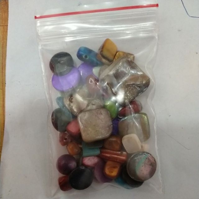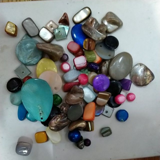 Đá vỏ sò nhiều dạng kiểu có lỗ xỏ nhiều màu Size từ 6-20mm, lỗ xỏ 1mm. Hình ảnh chỉ chụp 1phần và còn nhiều kiểu khác tùy gói. Dùng làm vòng tay,hoa tai,trang trí handmade theo ý thích của b. Gói 50gam như hình.