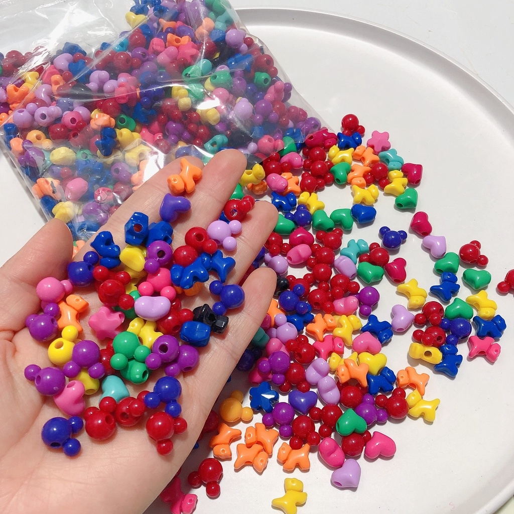 Mix 1: (hỗn hợp thỏ, tim, sao có màu đậm như hình, có lỗ xỏ 2-4mm, gói như hình là 250gam, ).