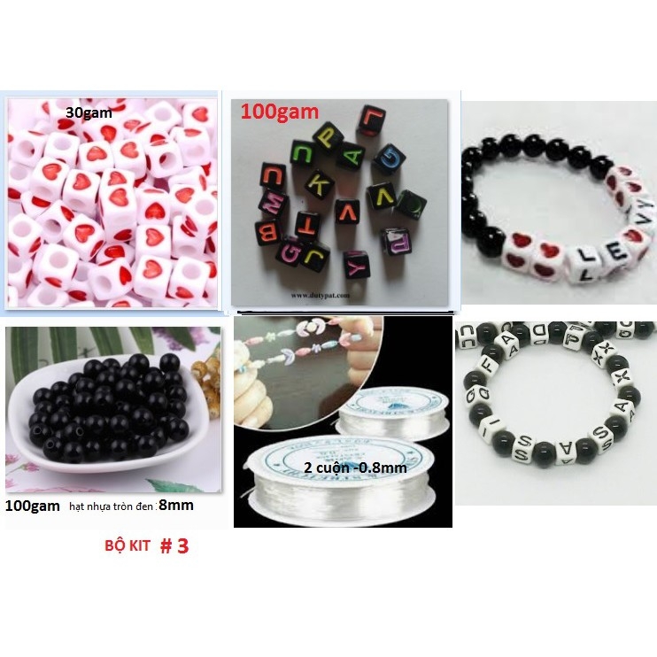 combo 230gam hạt chữ nhựa, dây thun làm 20 vòng tay -Số 3