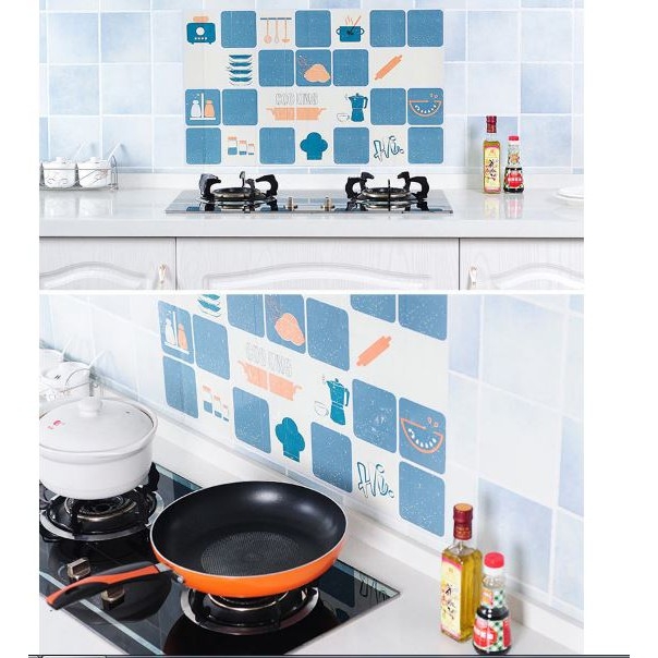 Giấy dán bếp cách nhiệt chống dầu mỡ, Decal dán bếp tráng nhôm chống nước cao cấp Tks