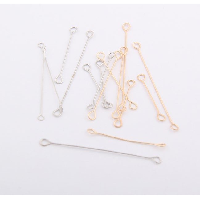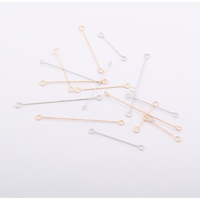 gói 10 cây kim 2 đầu móc nhiều size 20-25-30-40mm làm hoa tai (inox)