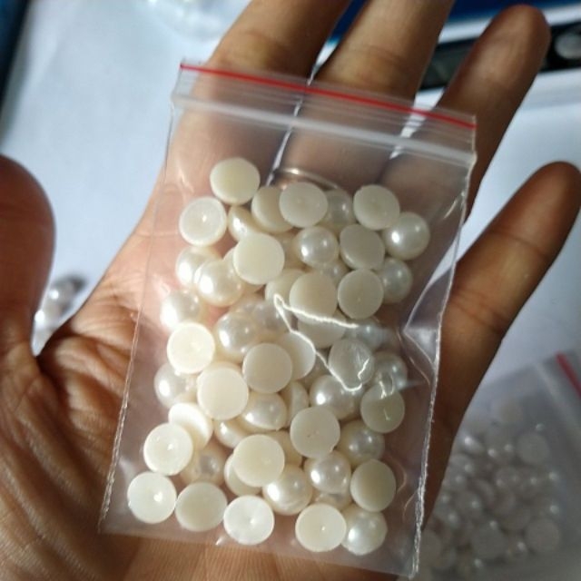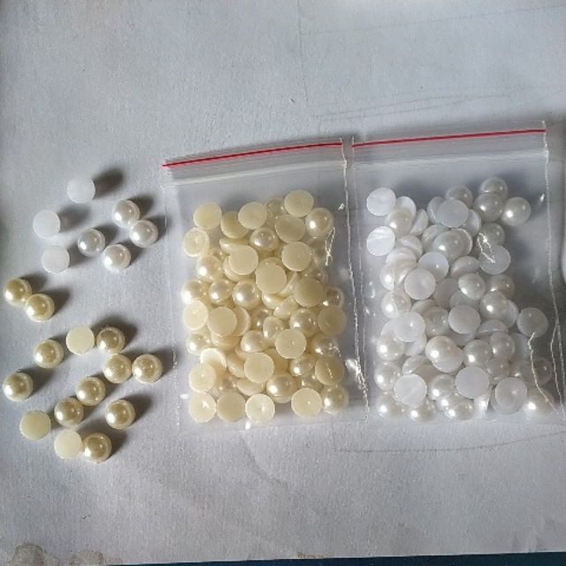 Gói 10gam hạt bẹt ngọc trai nhựa (hình bán cầu) dán 8mm
