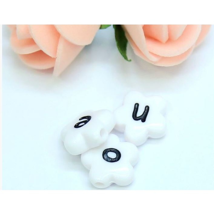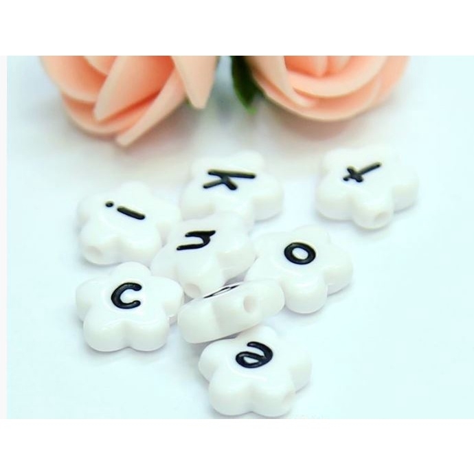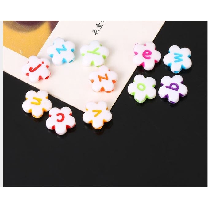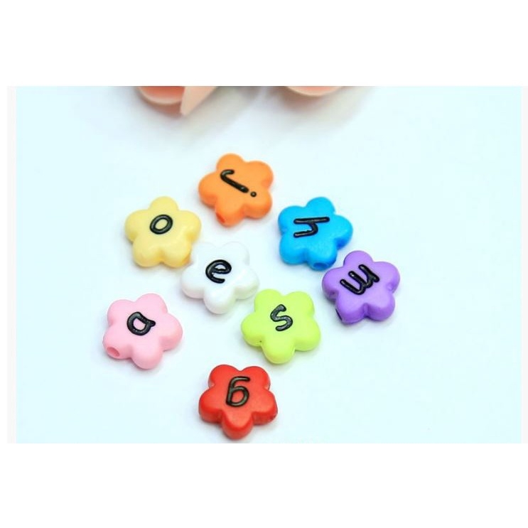 gói 25/50/100gam hạt nhưa cánh hoa in chữ cái đen