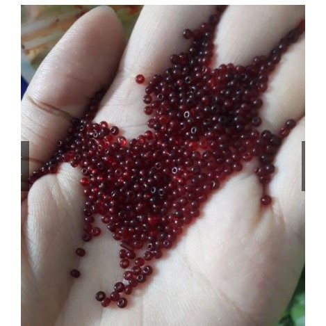 hạt cườm tấm ,cườm nhí đỏ đậm dùng làm trang sức, trang trí quần áo... đường kính hạt 2mm , lỗ xỏ 0.8mm. gói 50gam khoảng hơn 3000 hạt (gói như hình) đây là loại cườm nhỏ nhất