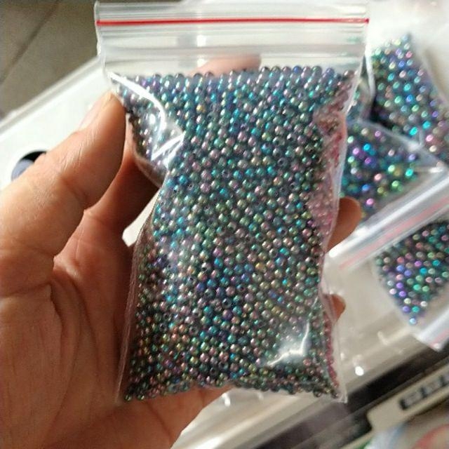 Hạt bẹt nhựa xanh ánh cừ 4mm