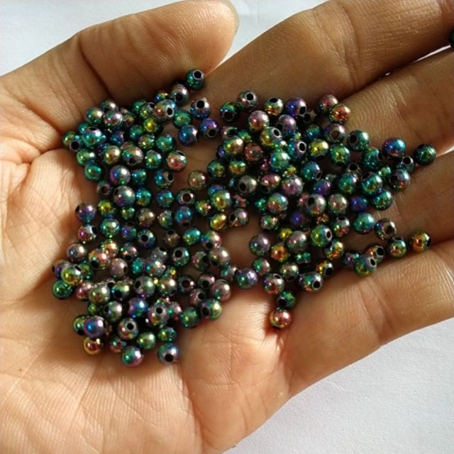 Hạt bẹt nhựa xanh ánh cừ 4mm