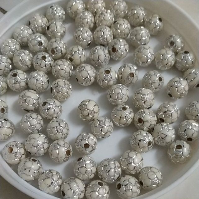 Hạt nhựa hình quả bóng trắng bạc 10mm