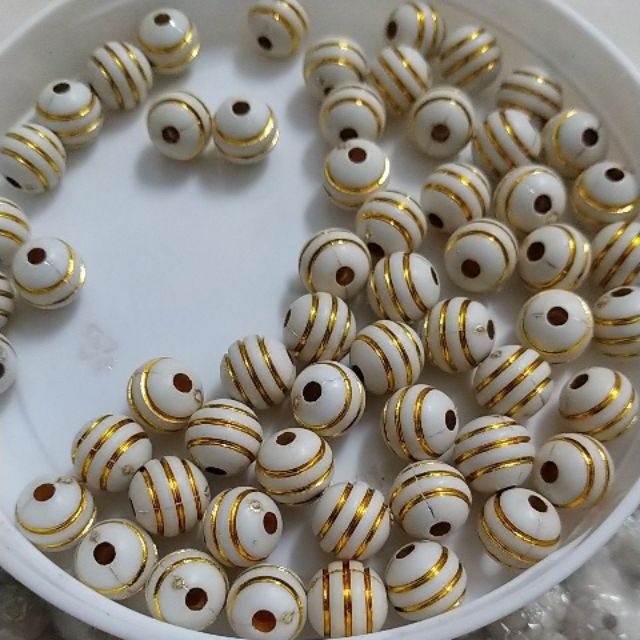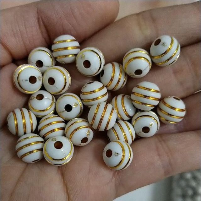 Hạt nhựa tròn hoa văn tvàng 10mm-THV07