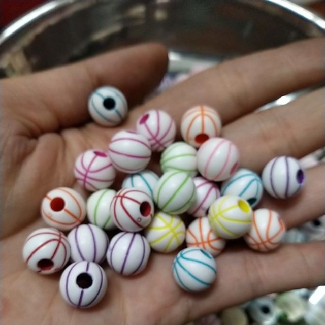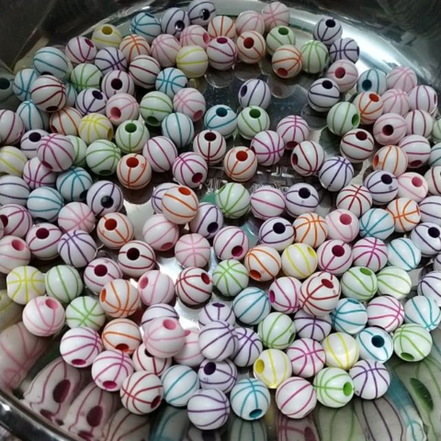 Hạt nhựa in hoa văn sọc nhiều màu.