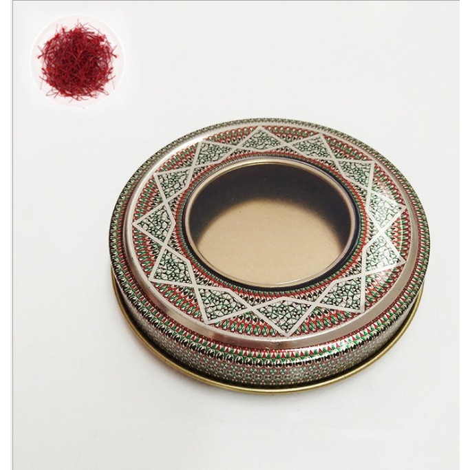 Hộp kim loại in hoa văn đựng saffron 1-5gam