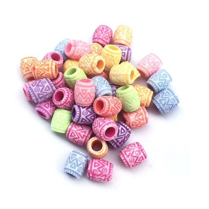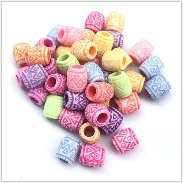 (P117-12) 10-50gam hạt nhựa ống xỏ trụ hoa văn 7x8mm, lỗ xỏ 3mm