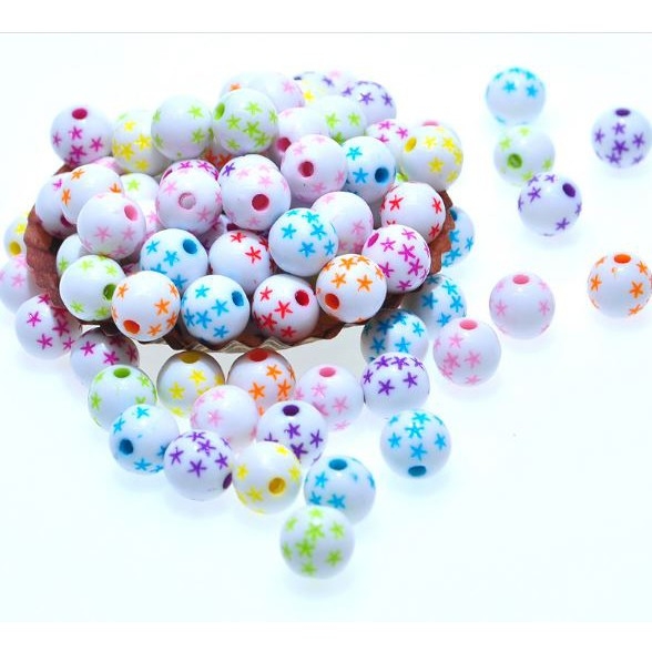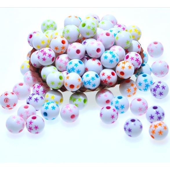 (P117-27) gói 10-50gam hạt nhựa tròn khắc ngôi sao 8mm