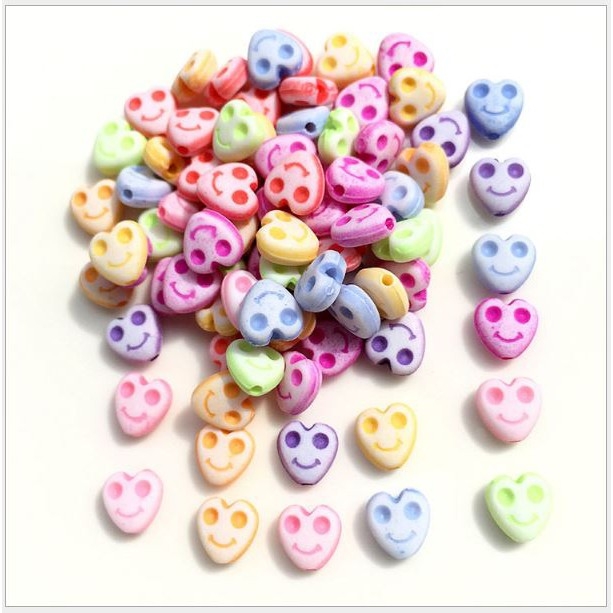 #P117-32 gói 10-50gam hạt nhựa trái tim khắc mặt cười 8mm màu mờ
