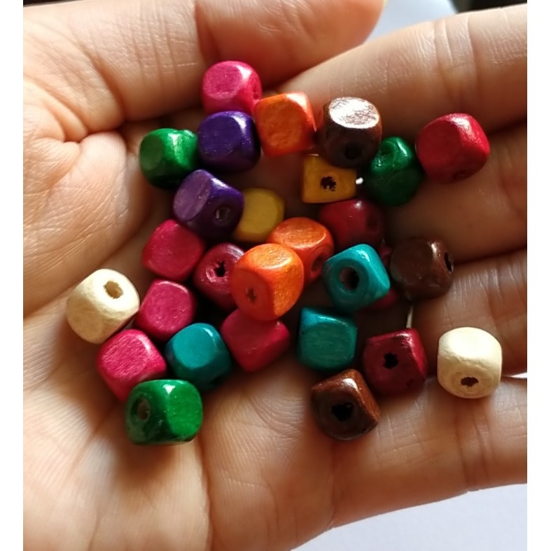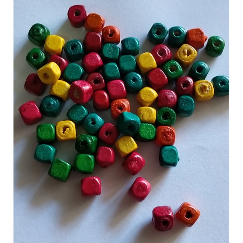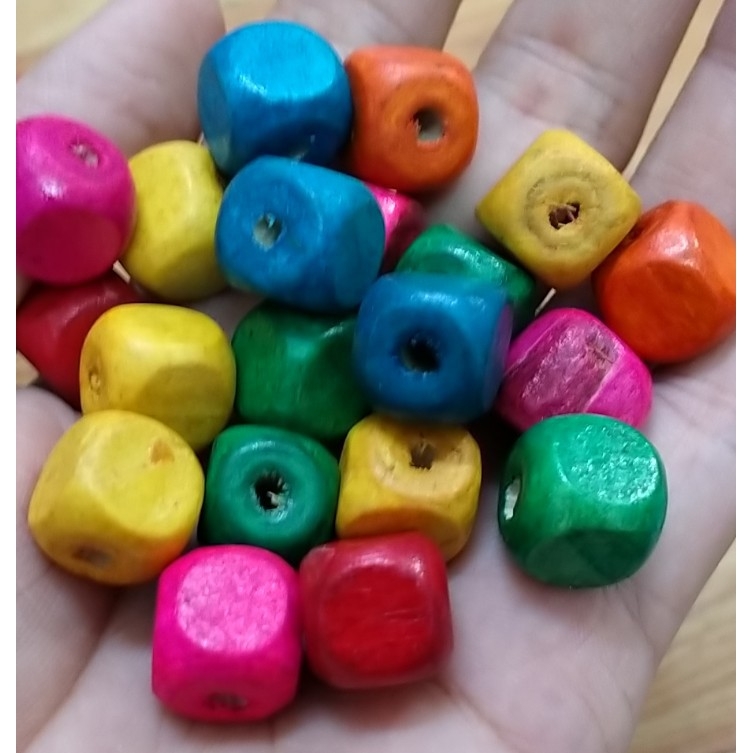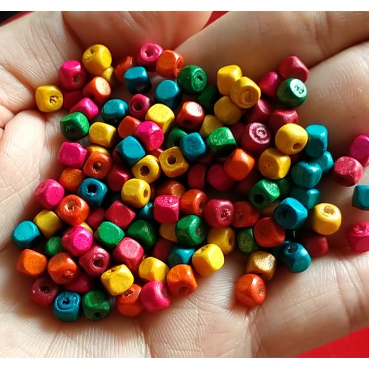 (P118-1/6) 5-25gam hạt gỗ vuông nhiều màu nhiều size có lỗ xỏ làm thủ công, đồ chơi, trang trí diy