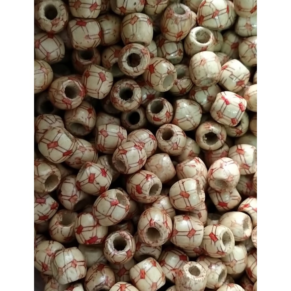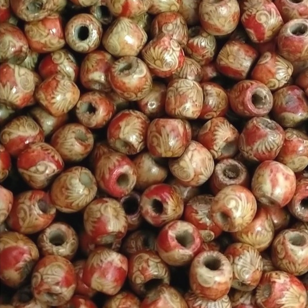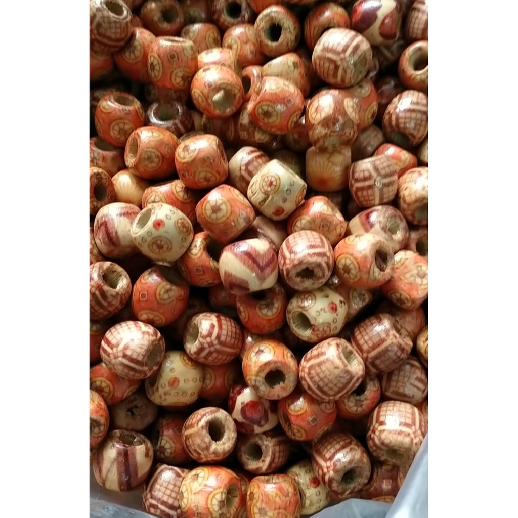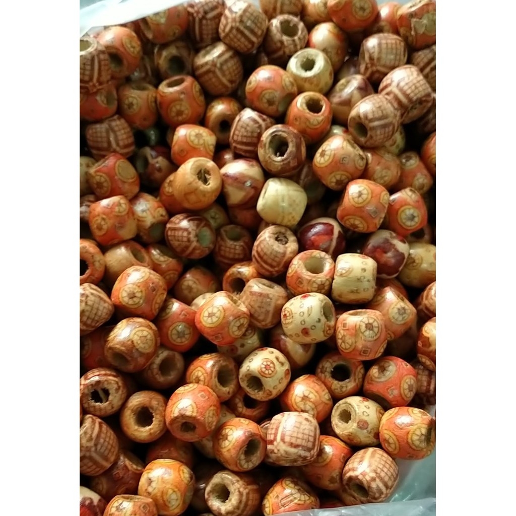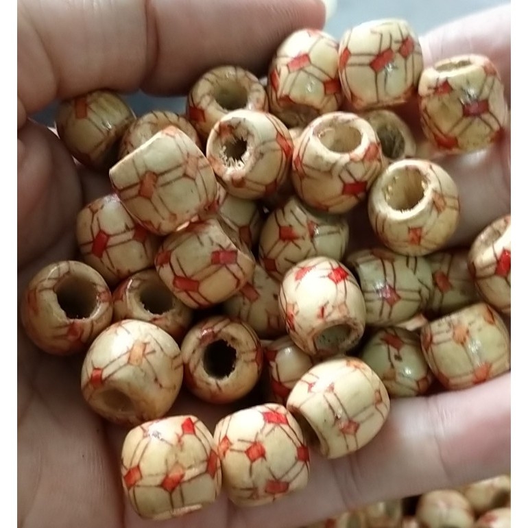(p118-15) gói 10 -50 hạt gỗ in hoa văn 12mm lỗ lớn 6.8mm