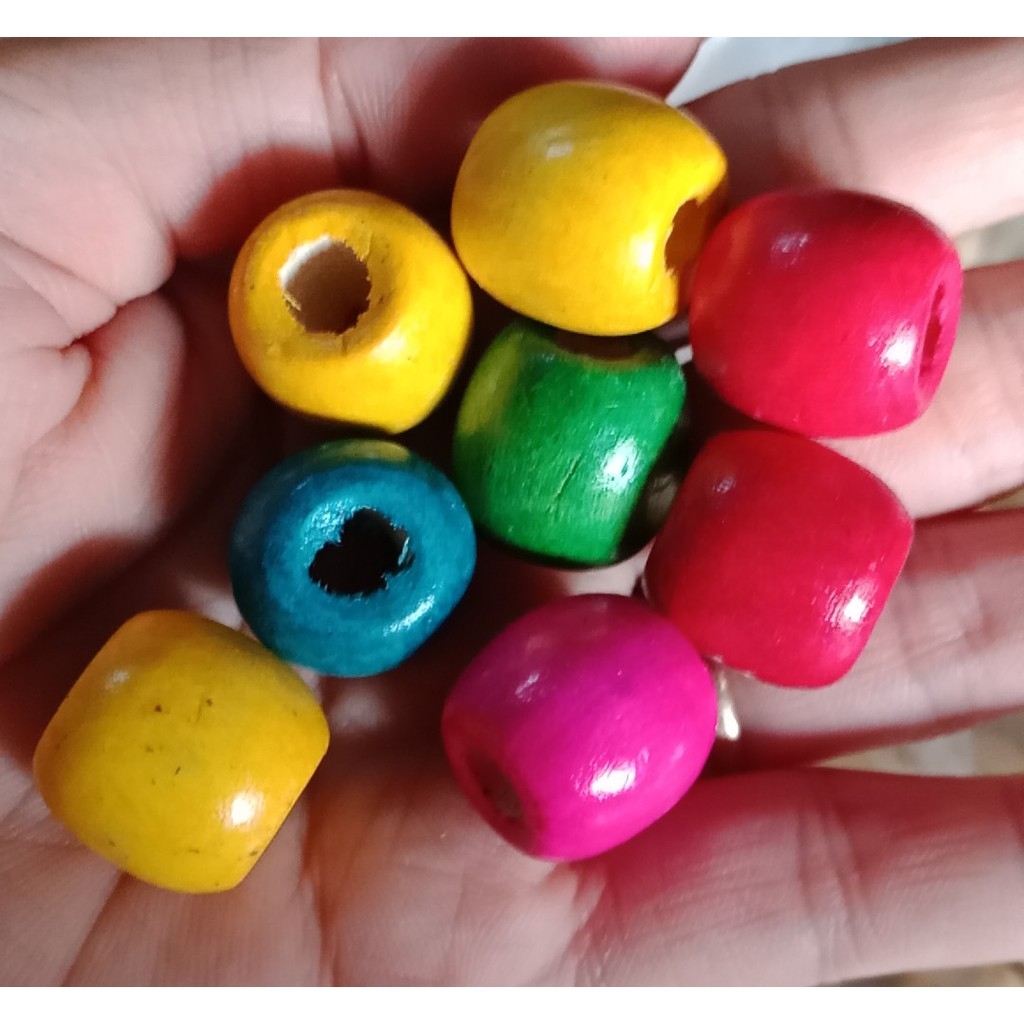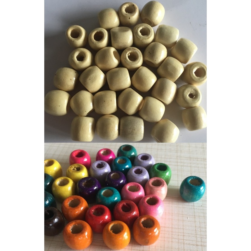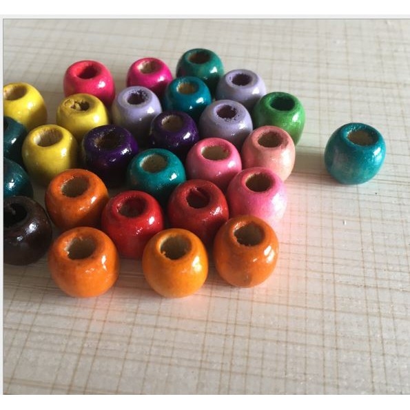 (P118-36) 25-100gam hạt gỗ 11x12mm & 16x17mm lỗ lớn dùng làm đồ chơi, trang trí