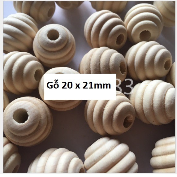 hat gỗ oval xoắn tròn 20x21mm màu kem làm đồ chơi, trang trí diy handmade