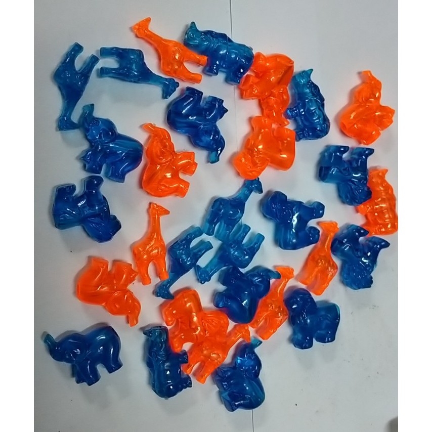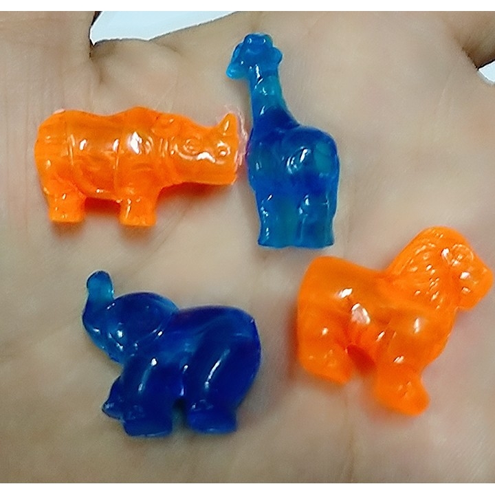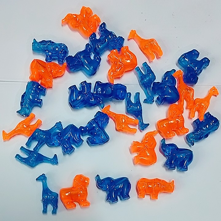 (p132-8 M2) 10-50gam con thú nhựa xanh cam làm đồ chơi trang trí có lỗ xỏ 4mm