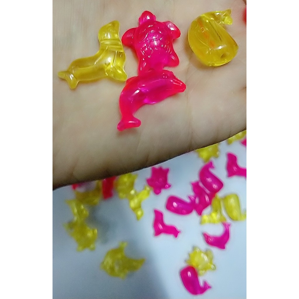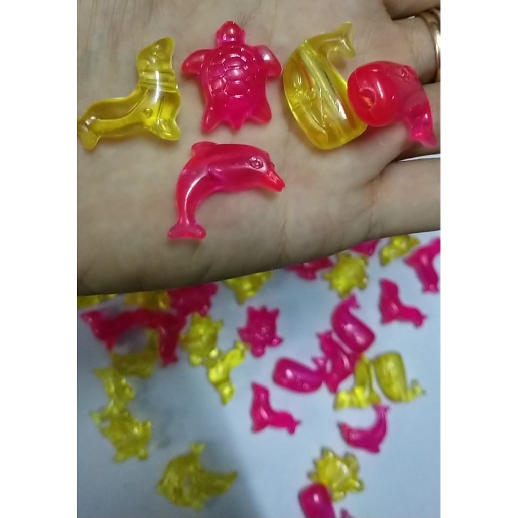 (P132-8 M3) 10-50gam Hỗn hợp cá, rùa nhựa vàng hồng có lỗ xỏ 4mm làm đồ chơi, trang trí
