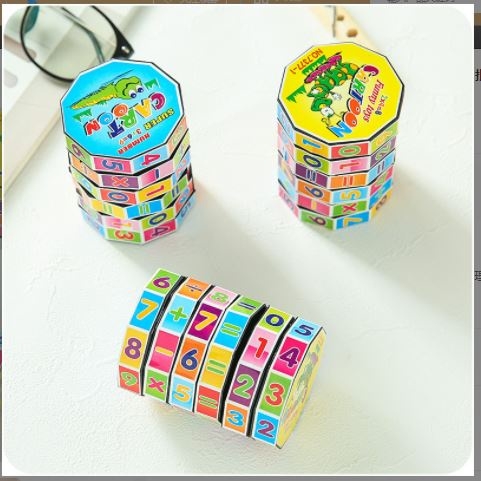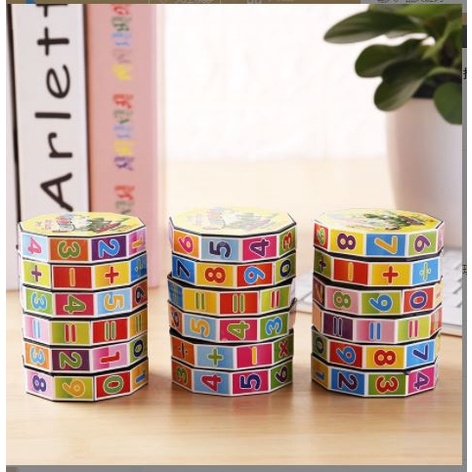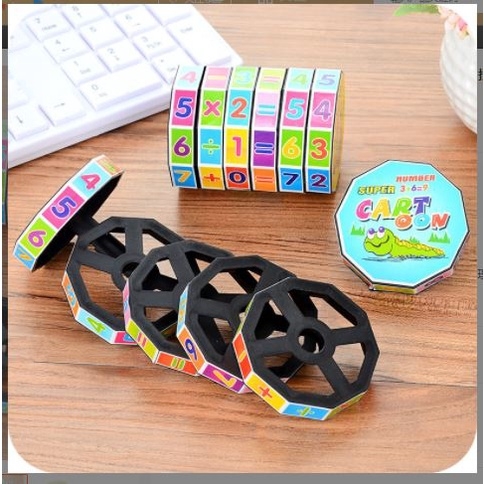 -Rubic toán học cho bé gồm 6 vòng, mỗi vòng có 10 cạnh với các chữ số và ký hiệu toán học bao quanh giúp bé quen với làm tính.