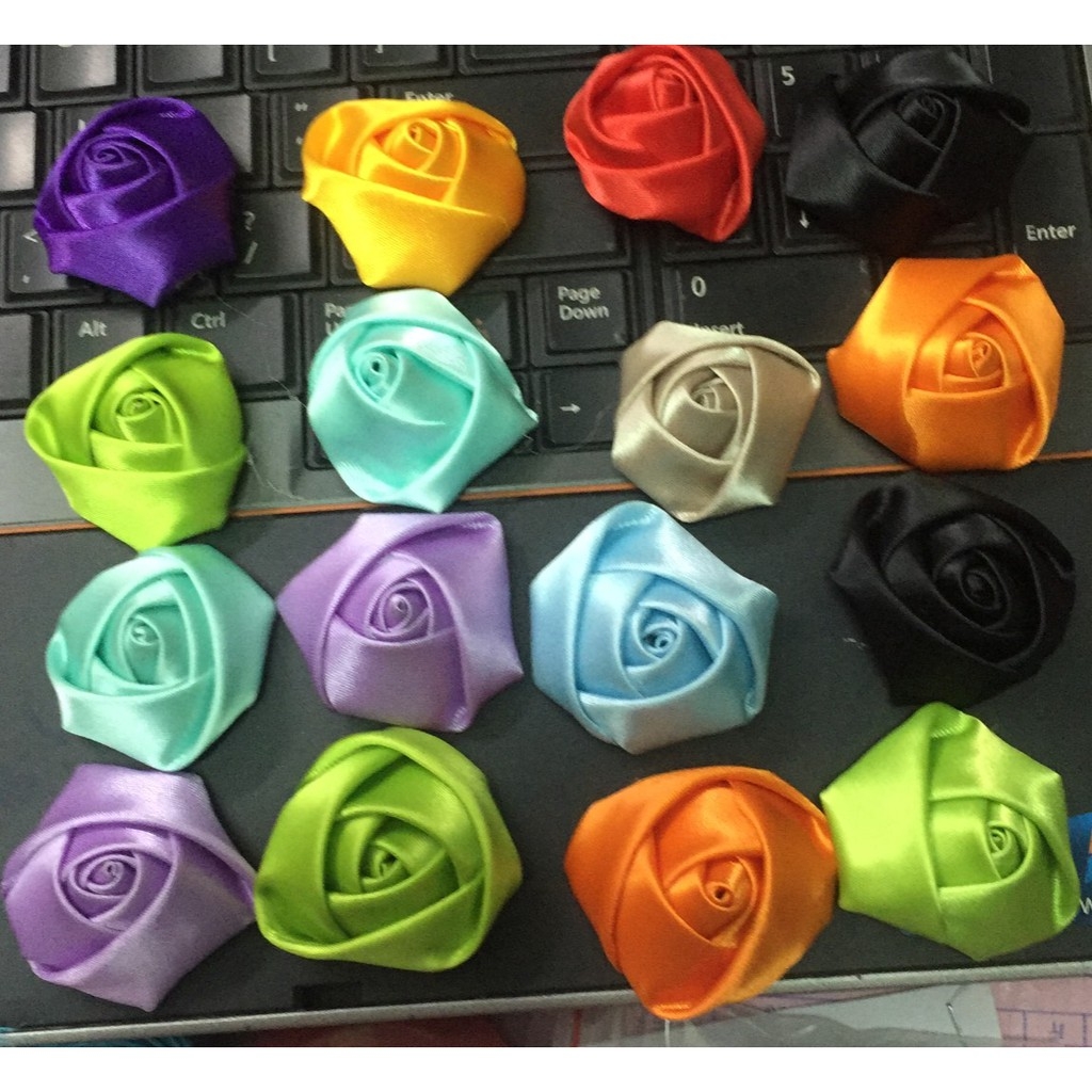 set 5-10 hoa vải satin, hoa hồng vải từ 2-4cm nhiều màu ngẫu nhiên đính áo, trang trí handmade
